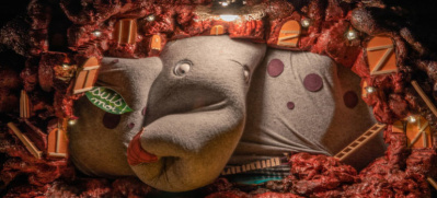 marionnettes dès 3 ans création 2019 35 min   Un éléphant gris à pois violets tombe amoureux d’une fourmi noire à taille de guêpe. « Suis-moi ! » dit la fourmi à l’éléphant. Pas facile de passer par un trou de fourmi quand on est un éléphant. Mais si ! Il suffit de passer la trompe, puis le reste du corps. Ils vont alors voyager à travers une fourmilière, une boite à couture, une bouteille d’eau et même un coquillage. Leur différence n’est pas un obstacle car leur amour rend les choses possibles. Une histoire d’amour qui n’a rien d’extraordinaire, juste un peu délirante et onirique !