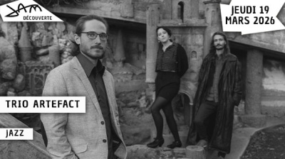 Le trio Artefact se démarque par son répertoire de compositions et d’arrangements modernes et poétiques. Envolées lyriques, rêveries et épopées fantastiques en huis clos sont à l’affiche d’une musique cinématographique qui puise notamment son inspiration dans le jazz de Kenny Wheeler, McCoy Tyner ou Bill Evans, ainsi que dans l’œuvre classique de Ravel. Line-up : Emilie Ayer : Chant Toussaint Guerre : Clarinette basse Benjamin Thiébault : Piano